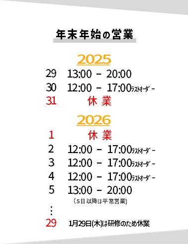 年末年始の営業・2026年からの変更