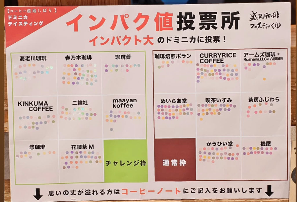 それから当店のドミニカを飲んでインパクト投票して下さったりコメントを残して下さったのも嬉しかったです。